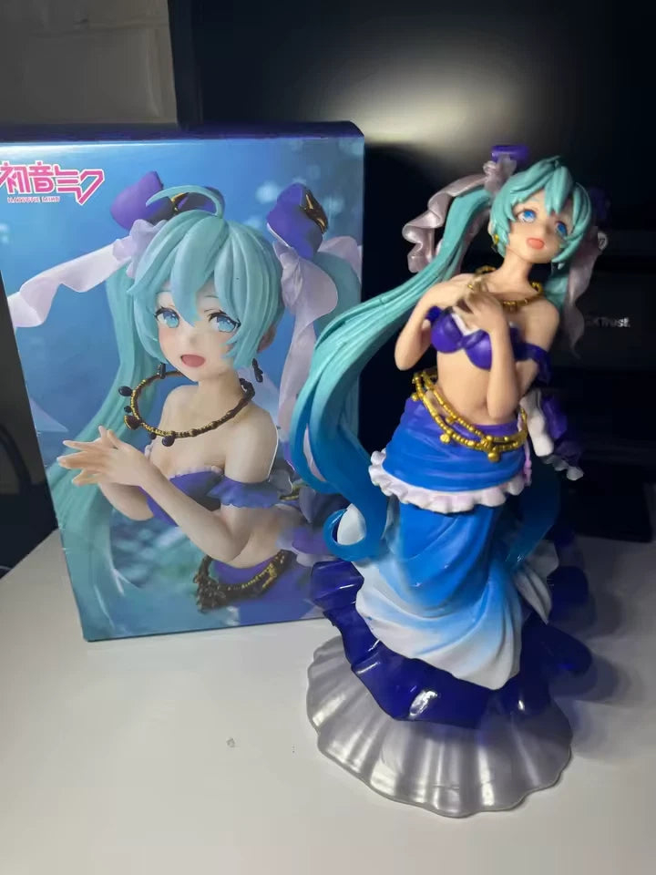 The Hatsune Miku Mermaid Project DIVA Vocaloid Collectible Kawaii Figure is a 9" figurine featuring the popular character Hatsune Miku wearing a mermaid dress design. This limited edition, remastered edition collectible manufactured in 2025 by Zenpai Association. The figure comes boxed and is perfect for fans of the Vocaloid series and anime girl genre. It is a must-have for collectors of animation merchandise and fans of the Project DIVA rhythm franchise. Made of plastic and PVC materials, this adorable figure is a delightful addition to any anime collection.