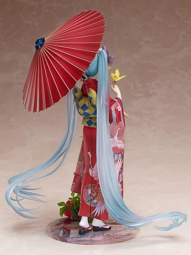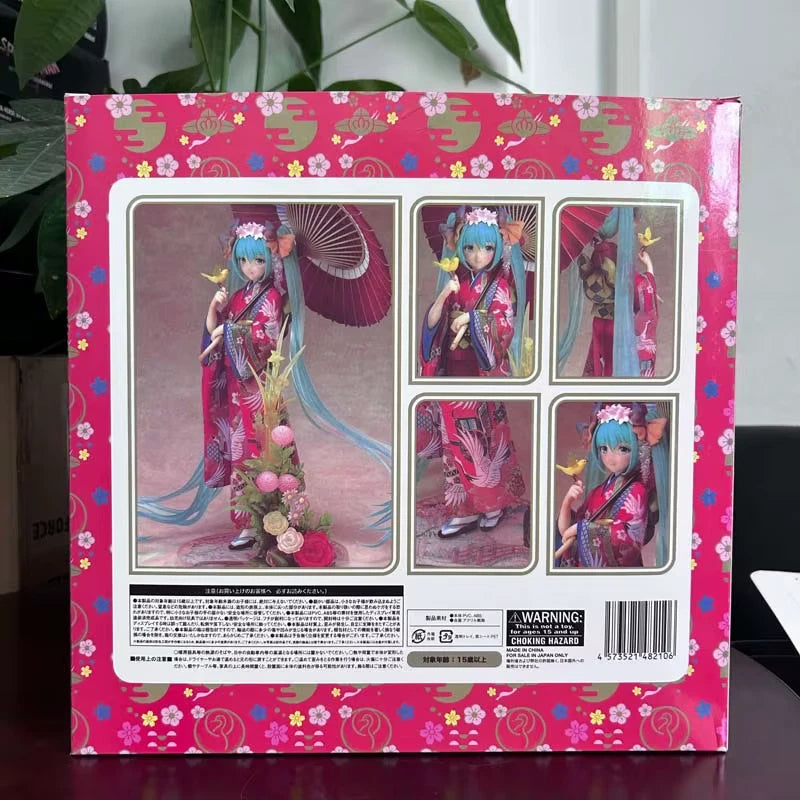 This Hatsune Miku Traditional Kimono Collectable Anime Figure is a 8.4" PVC figure featuring the iconic anime girl in a traditional Japanese kimono outfit. This licensed reproduction from the Vocaloid series is perfect for collectors and fans of Hatsune Miku. Packaged in its original box, this figure is sure to be a prized addition to any anime merchandise collection. With a cute and detailed design, this VTuber figure captures the essence of Hatsune Miku's character and is a must-have for fans of the franchise.